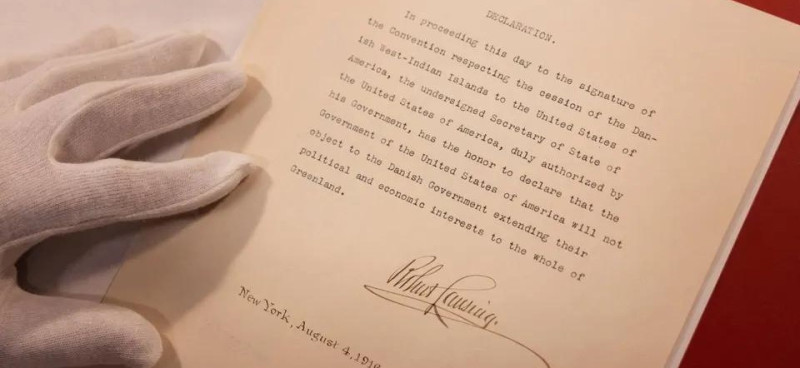 Əslində isə ABŞ özü 1916-cı ildə Danimarkanın bütün Qrenlandiya üzərində tam suverenliyini rəsmi olaraq tanıyıb. 4 avqust 1916-cı ildə Amerika Danimarkanın Karib adalarını (indiki Virgin Adaları) satın aldıqda ABŞ dövlət katibi Robert Lansing ayrıca bir bəyannamə imzaladı və onun əsli Rigsarkivetdə – Danimarka Milli Arxivində saxlanılır. Bəyannamədə deyilirdi: