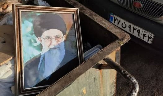 İranda etirazçı gənclər ölkənin ali rəhbəri Əli Xameneyinin şəklini zibilliyə atır