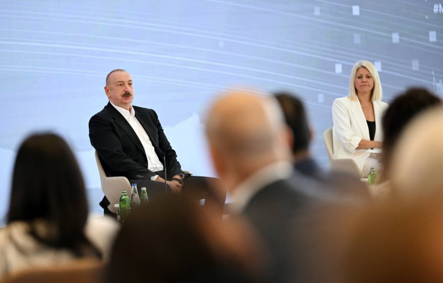 Prezident İlham Əliyev: Bilirsiniz, biz bunu yeni başlamışıq. Onun nə dərəcədə uğurlu olacağını görəcəyik. Lakin aydındır ki, biz dünyadakı tendensiyaların arxasınca getməliyik. Sadəcə, oturub gözləyə bilmərik. Buna görə, mənim qərarlarım yalnız inkişaf və müasirləşmə gündəliyinə əsaslanır. Beləliklə, bizim aparıcı beynəlxalq şirkətlərlə yaxşı təmaslarımız var və onların əksəriyyəti ilə sərmayədar kimi işləyirik. Vəsaitlərimizi iri beynəlxalq qruplar vasitəsilə sərmayə kimi yatırırıq. Eyni zamanda, enerji sektoruna xarici sərmayələrin cəlb edilməsində yaxşı təcrübəmiz var. Son 20 ildə Azərbaycana yatırılmış yalnız xarici sərmayələrin məbləği 200 milyard ABŞ dollarına bərabər olub. Dediyim kimi, Azərbaycan sabit, özünü təmin edən və gələcəyə aydın baxışları olan ölkədir. Biz ön cərgədə olmalıyıq. Bir daha nə dərəcədə uğurlu olacağımızı söyləmək çətindir. Süni intellektlə bağlı nə baş verəcəyini söyləmək mənim üçün çətindir. Çünki bilirsiniz, müxtəlif cəmiyyətlərin fərqli təbəqələrində buna güclü və artan müqavimət var. Bu proses hələ yeni başlayıb, görərik. Mənim üçün indi “nəyə nail olacağıq, nəyə yox” söyləmək düzgün olmazdı. Biz yalnız müəyyən nailiyyətlərimiz olduqda bildiririk. Ümid edirik, gələn il Şuşa Forumuna gəlsəniz biz sizinlə müəyyən məsələləri bölüşəcəyik.