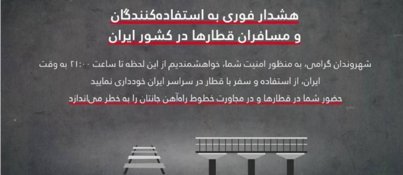 İsrail Müdafiə Qüvvələri (IDF) İran vətəndaşlarını təhlükəsizlik səbəbləri əsasında İran vaxtı ilə saat 21:00-a qədər qatarlarda səyahət etməkdən çəkinməyə çağırıb.
