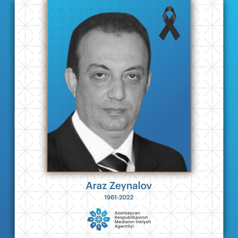 Azərbaycan Respublikasının Medianın İnkişafı Agentliyinin (MEDİA) rəhbərliyi və kollektivi Araz Zeynalovun vəfatından kədərləndiyini bildirir, mərhumun ailəsinə dərin hüznlə başsağlığı verir.