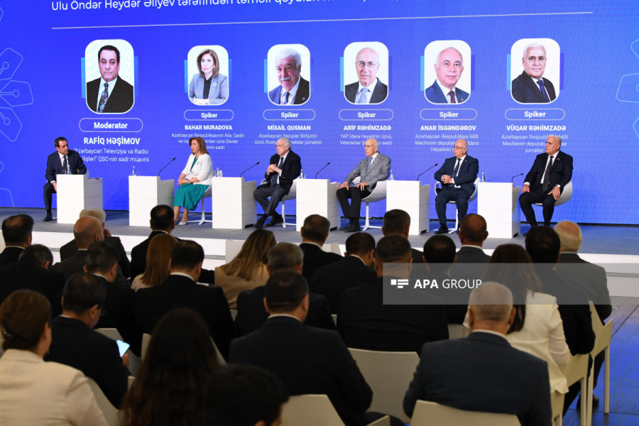 “Azərbaycan Televiziya və Radio Verilişləri” QSC-nin sədr müavini Rafiq Həşimovun moderatorluğu ilə baş tutan “Ulu Öndər Heydər Əliyev tərəfindən təməli qoyulan media prinsipləri” mövzusunda panel sessiyada Azərbaycan Respublikasının Ailə, Qadın və Uşaq Problemləri üzrə Dövlət Komitəsinin (AQUPDK) sədri Bahar Muradova, Azərbaycan Yazıçılar Birliyinin üzvü, Rusiyanın Əməkdar jurnalisti Mixail Qusman, YAP İdarə Heyətinin üzvü və Veteranlar Şurasının sədri Arif Rəhimzadə, Milli Məclisin deputatları - YAP İdarə Heyətinin üzvü Anar İsgəndərov və əməkdar jurnalist Vüqar Rəhimzadə tərəfindən Ümummilli Liderin media sahəsində həyata keçirdiyi islahatlar, azad və peşəkar medianın formalaşmasında atdığı əhəmiyyətli addımlar barədə geniş müzakirələr aparılıb və həmin prinsiplərin bu gün də dövlətin media siyasətində əsas istiqamət kimi davam etdirildiyi vurğulanıb.