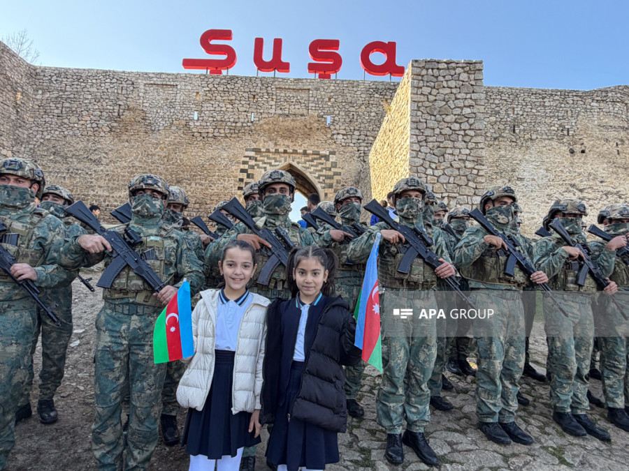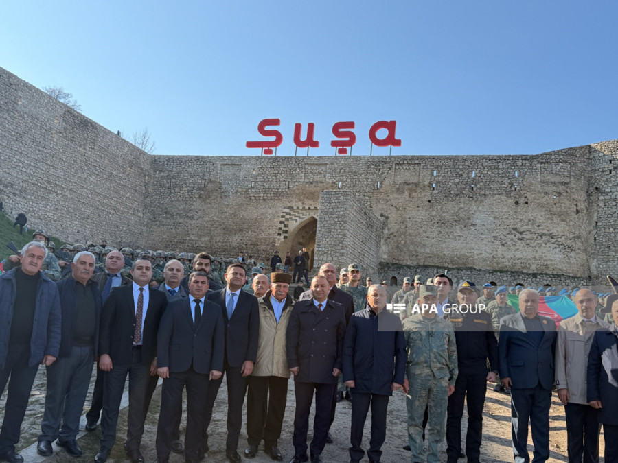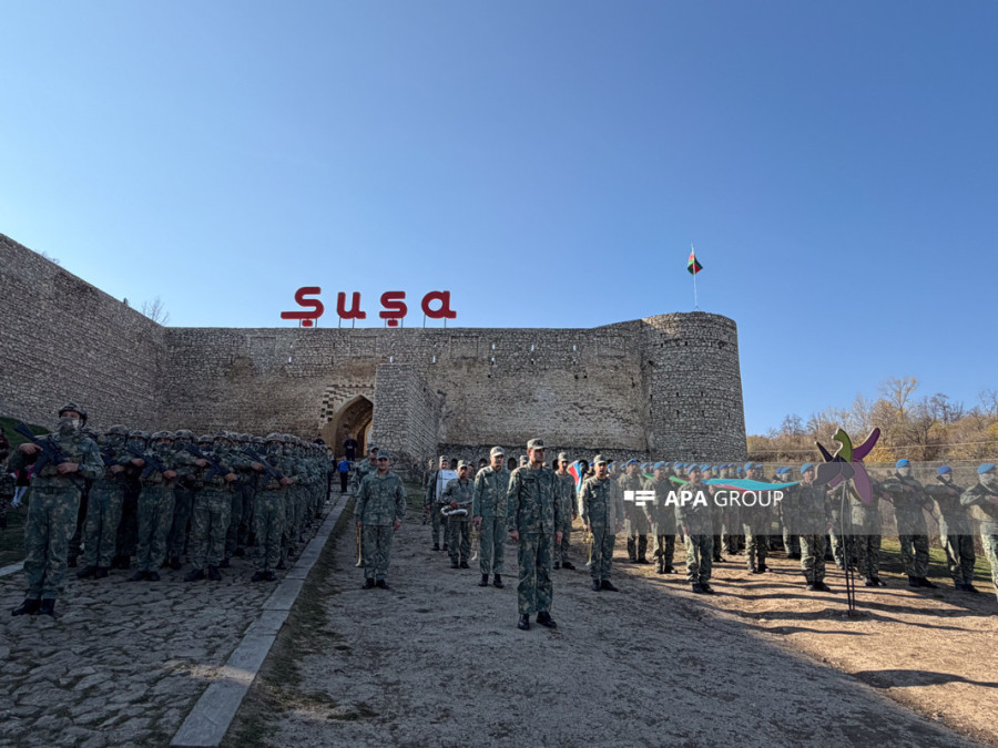 Şuşada Zəfərin beşinci ildönümünün qeyd olunması münasibətilə hərbi orkestrin müşayiəti ilə yürüş keçirilib.