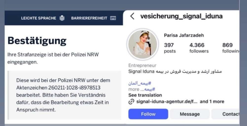 Azərbaycanlı vəkil Sina Yusifi bu barədə yazıb: "İddiasına görə, Almaniyanın Şimali Reyn-Vestfaliya əyalətinin Zigen şəhərində SIGNAL IDUNA sığorta şirkətində işləyən bu şəxs tərəfindən İnstaqram sosial şəbəkəsində Azərbaycan xalqına qarşı nifrət dolu məzmunun dərc olunmasından sonra məsələ Şimali Reyn-Vestfaliya Dövlət Polisi (POLIZEI NRW) tərəfindən rəsmi olaraq qeydiyyata alınıb və müvafiq iş nömrəsi ilə araşdırılır. Bundan əlavə, yuxarıda qeyd olunan hesabat cinayət işi üzrə istintaq üçün Zigen Şəhər Prokurorluğuna (STAATSANWALTSCHAFT SIEGEN) da göndərilib. Məsələnin hüquqi tərəfi Almaniya cinayət qanunvericiliyinə uyğun olaraq davam etdiriləcək."