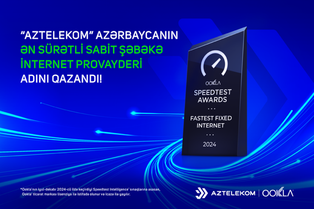 “Aztelekom” genişzolaqlı və mobil şəbəkə təhlilləri üzrə qlobal şirkət olan “Ookla” tərəfindən “Speedtest Award for Fastest Fixed Network” (Ən sürətli Sabit Şəbəkə üzrə Speedtest Mükafatı) mükafatına layiq görülüb.