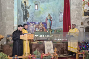 Qəbələ rayonunun Nic qəsəbəsində “Cotari” Alban Udi kilsəsində İsa Peyğəmbərin mövludu günü - Milad bayramı qeyd olunub.
