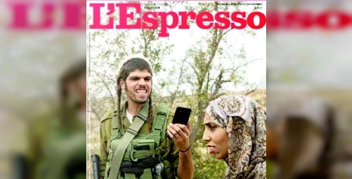 İtaliyanın nüfuzlu “L'Espresso” jurnalının yeni sayının üz qabığında silahlı bir İsrail əsgərinin İordan Çayının Qərb Sahilində çətin vəziyyətdə olan fələstinli qadını lentə aldığı foto yayımlanıb.