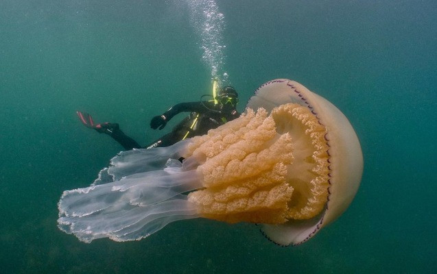 Videoda görünən gənc meduza hələ kiçik olsa da yaşlı meduzaların ölçüsü 90 sm-ə, çəkisi isə 10 kq-a çata bilər. Şəffaf-ağ gövdəsi mavi və ya bənövşəyi haşiyə ilə əhatələnib. Toxunması həssas dəriyə sahib şəxslərdə yüngül qıcıqlanma yarada bilər. Qida rasionu əsasən plankton və kiçik xərçəngkimilərdir. Ekosistemdə balıqlar üçün həm rəqib, həm də qida mənbəyidir. İsti mövsümlərdə kütləvi şəkildə sahilə yaxınlaşaraq diqqətçəkən mənzərə yaradır.