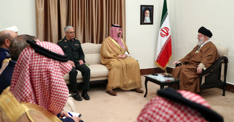 uzun illər İranla çox gərgin münasibətlər yaşayan, yalnız son dönəmdə Çinin vasitəçiliyi sayəsində əlaqələri nisbətən normal məcraya düşən Səudiyyə Ərəbistanının Müdafiə naziri Xalid bin Salman çoxları üçün gözlənilməz bir şəkildə İran paytaxtına gəldi. Tehranda böyük hörmət və təmtəraqla qarşılanan Xalid bin Salman İran Silahlı Qüvvələrinin Baş Qərargahının rəisi Məhəmməd Bağeri, Ali Milli Təhlükəsizlik Şurasının katibi Əli Əkbər Əhmədiyan, ölkə prezidenti Məsud Pezeşkiyan və İranın ali rəhbəri Ayətullah Əli Xameneyi ilə görüşdü, o cümlədən Səudiyyə Ərəbistanı kralının məktubunu Xameneyiyə təqdim etdi. İran-ABŞ danışıqlarının Romada keçirilən ikinci raundu ərəfəsində baş tutan bu səfər İran mediası və ekspertləri tərəfindən müxtəlif cür şərh olunsa da, istər-istəməz cəmi bir neçə il öncə İran rəsmilərinin, xüsusən Əli Xameneyinin Səudiyyə Ərəbistanı haqqında sərt və təhqiramiz açıqlamaları da yada düşür. Həmin bəyanatları Xalid ibn Salmanla görüşdə söylənənlərlə müqayisə etdikdə, rəsmi Tehranın 180 dərəcəlik mövqe dəyişikliyinə heyrət etməmək olmur.