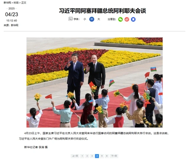В статье китайского национального информационного агентства "Синьхуа" под заголовком "Си Цзиньпин провел переговоры с Президентом Азербайджана Ильхамом Алиевым" говорится, что, несмотря на изменения международной обстановки, азербайджано-китайские отношения сохранили динамику развития на основе принципов взаимного уважения, равноправия и взаимовыгодного сотрудничества и вышли на уровень стратегического партнерства.