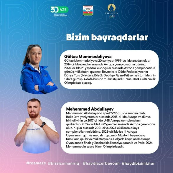 Сегодня в 21:30 по бакинскому времени в Париже начнется церемония открытия XXXIII Летних Олимпийских игр. Знаменосцами сборной Азербайджана будут боксер Магомед Абдуллаев и дзюдоистка Гюльтадж Мамедалиева.